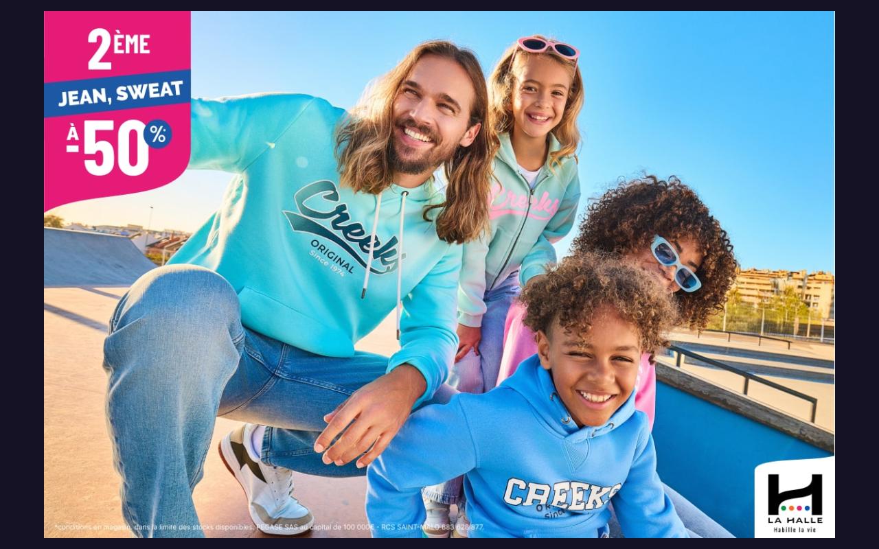 Pour tout jean ou sweat acheté, profitez de moins 50% sur le moins cher des deux*